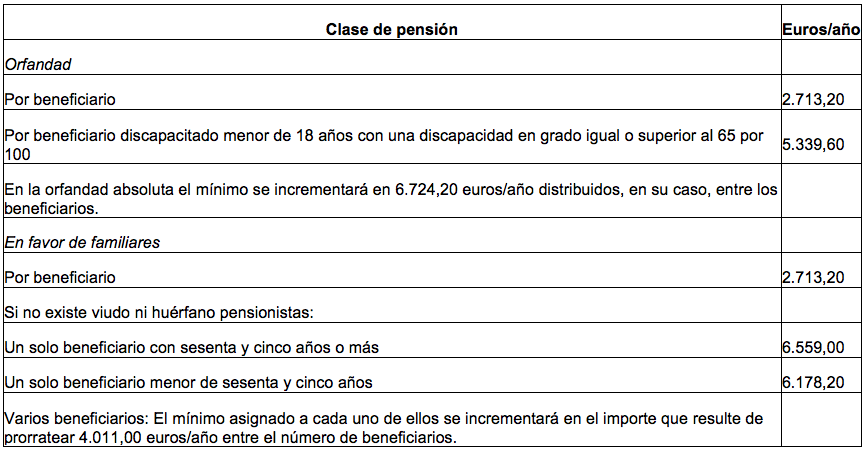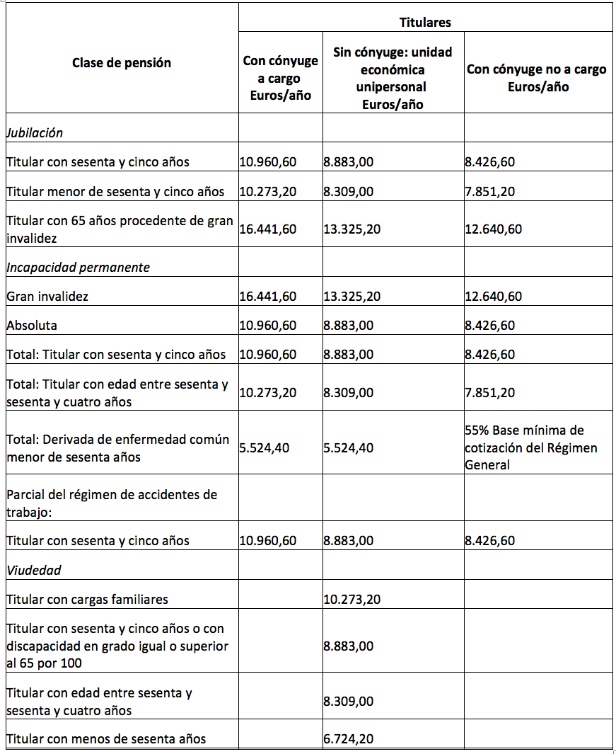 Les quanties mínimes de la pensió de jubilació durant l’any 2015 són les següents (LPGE 2015, art. 45.5, i RD 1107/2014):